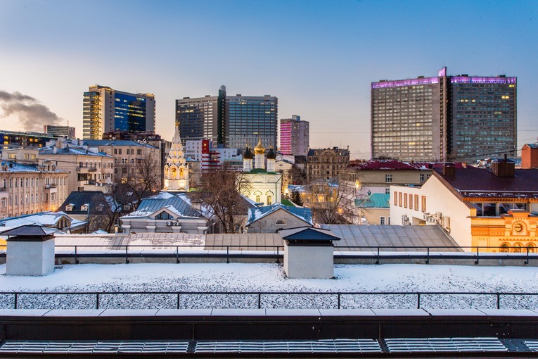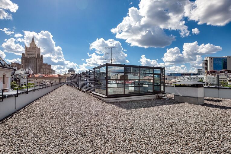 Окна пентхауса выходят на тихий Кривоарбатский переулок и старые московские особняки, что создает максимальную приватность, оберегает от внешней суеты и создает атмосферу загородной жизни. В то время как богатая и удобная инфраструктура Арбата позволяет оставаться в центре всех столичных событий.